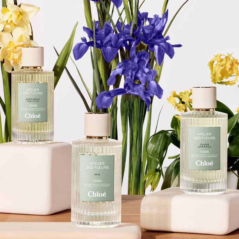 corsage or blended to compose endless combinations. Since its launch, Atelier des fleurs has exemplified Chloes pursuit of natural ingredients and authenticity. The story continues today in the same spirit. Formulated with 100 percent natural origin fragrance, naturally derived alcohol, and water Narcissus Poeticus, Iris and Ylang Cananga are vegan Eaux de Parfum. They contain no filters or artificial colourings, solely lavish materials selected with exquisite care.