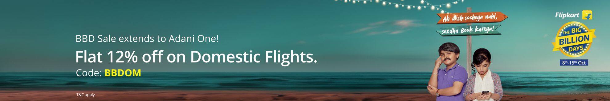 Promo offer can be redeemed only on domestic flights on Adani One website, m-web, and app.